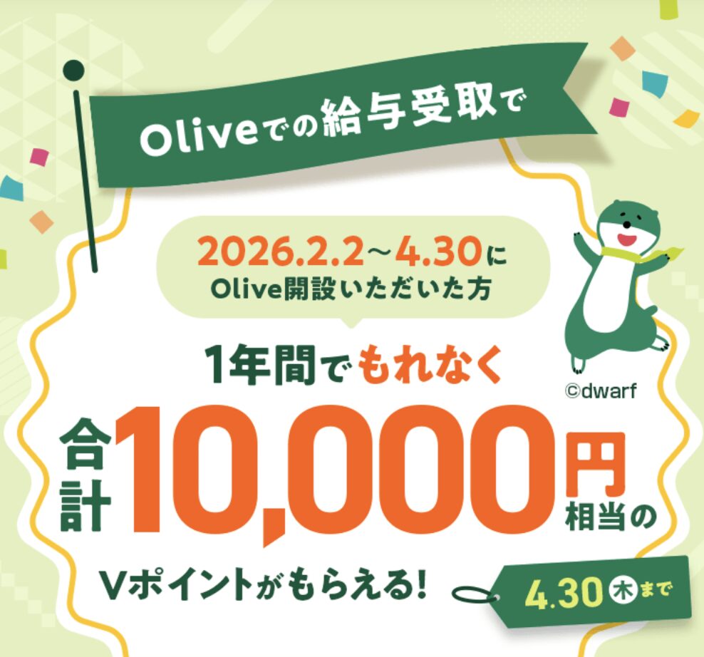 | Oliveアカウントの契約&アプリログイン※2026年2月28日(土)をもって終了 | +1% | Oliveアカウントを契約し、三井住友銀行アプリもしくはVpassアプリへ月1回以上ログイン |